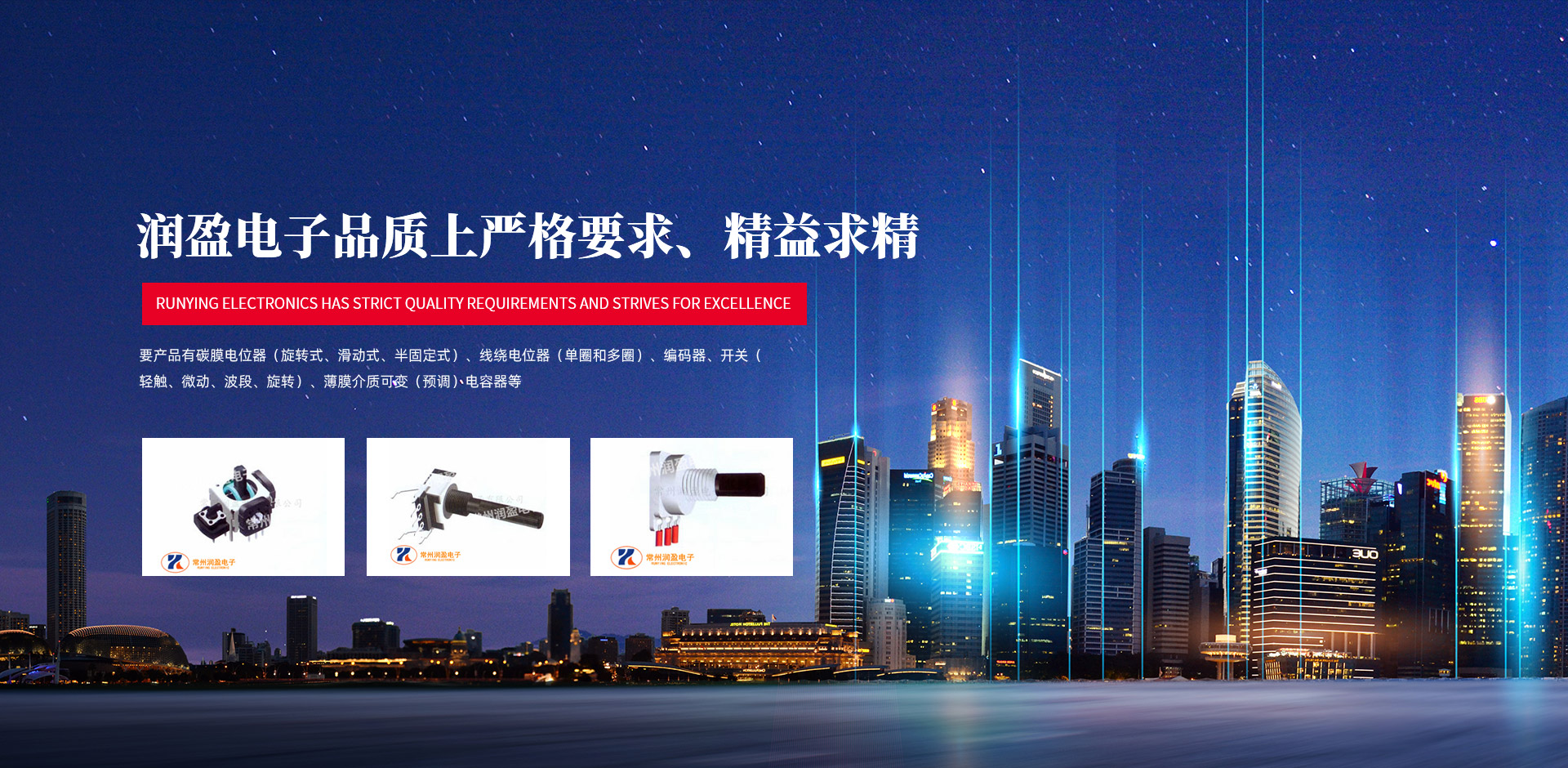 常州潤盈電子有限公司成立以來,從事編碼器、電位器、電子開關(guān)的研發(fā)和制造。公司總部設(shè)立在江蘇省常州市禮嘉鎮(zhèn)。常州潤盈電子有限公司擁有完整、科學(xué)的質(zhì)量管理體系,采用先進(jìn)的加工設(shè)備、精密的檢測儀器、高能的組裝生產(chǎn)線,在品質(zhì)上嚴(yán)格要求、精益求精,在團(tuán)隊(duì)管理上以人為本、精細(xì)管理,以此來確保本公司為客戶提供的優(yōu)良產(chǎn)品和服務(wù)。隨著公司業(yè)務(wù)的國際化,公司產(chǎn)品全部達(dá)到“ROHS”指令要求。公司現(xiàn)在主要產(chǎn)品有碳膜電位器(旋轉(zhuǎn)式、滑動式、半固定式)、線繞電位器(單圈和多圈)、編碼器、開關(guān)(輕觸、微動、波段、旋轉(zhuǎn))、薄膜介質(zhì)可變(預(yù)調(diào))電容器等。我們始終堅持“效率成就品牌,誠心鑄就未來”的宗旨。不斷創(chuàng)新是企業(yè)得以生存的動力,潤盈電子期待與您的合作!